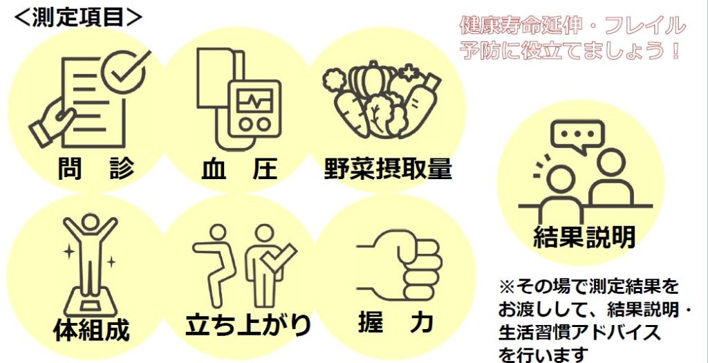 受診者は血圧や体脂肪率、野菜の摂取量等を測定します💪